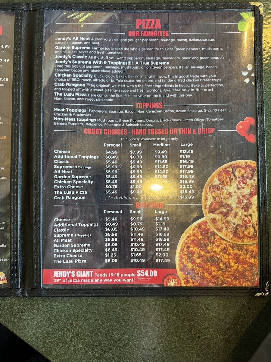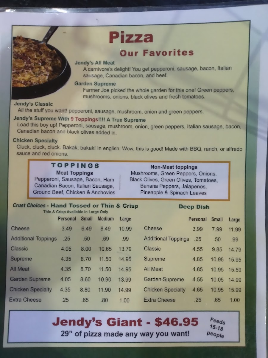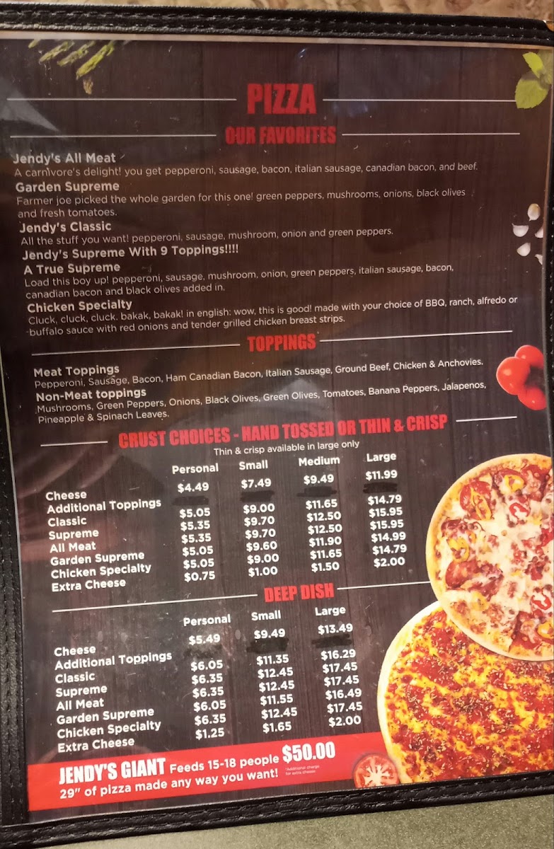 With outstanding customer service, great reviews, and a menu that caters to everyone, Jendy's Pizzeria is a must-visit for a joyful dining experience!